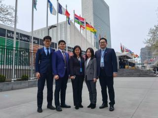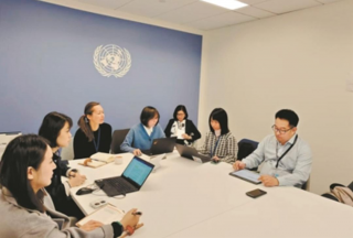 在联合国总部,陈斐媛(右二)与团队成员研讨